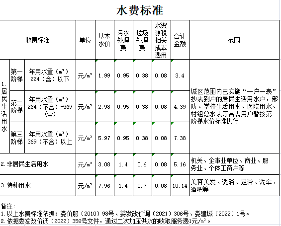 水費(fèi)標(biāo)準(zhǔn)